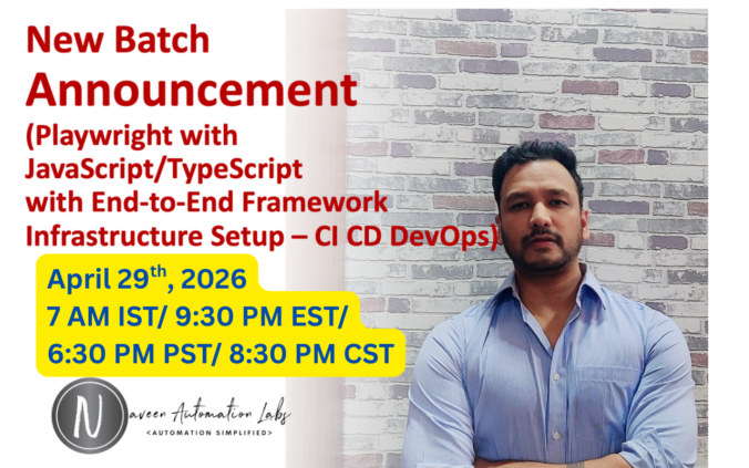 After a very high demand on Playwright + Javascript, here I’m going to start next batch from 29th April 2026 [ 7 AM IST / 9:30 PM EST ]