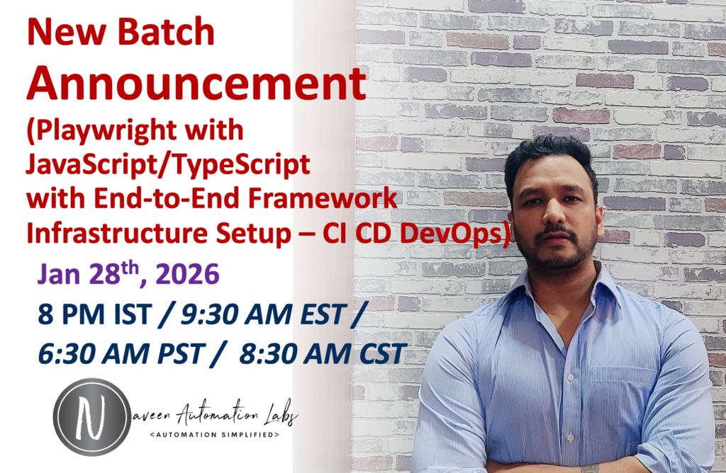 After a very high demand on Playwright + Javascript, here I’m going to start next batch from 22nd Jan 2026 [ 8 PM IST / 10:30 AM EST ]